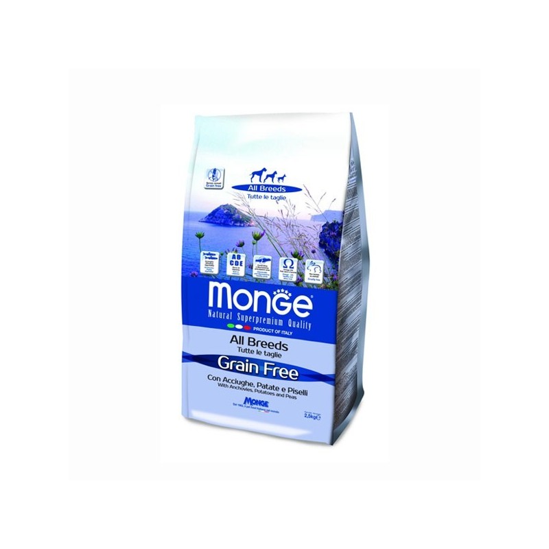 MONGE GRAIN FREE MINI ADULT CON ACCIUGHE PATATE E PISELLI 2,5 Kg