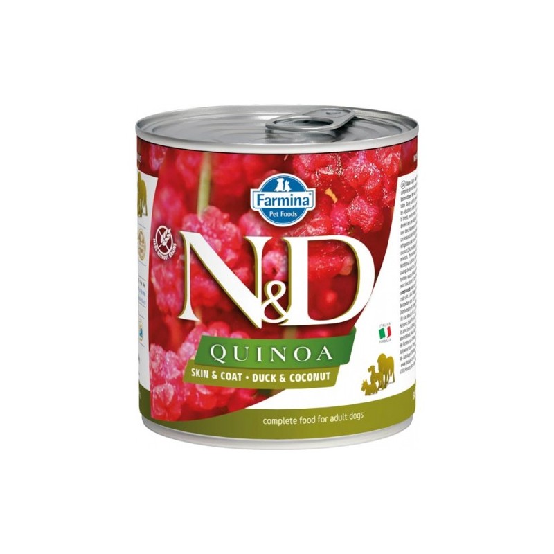 Alimento completo per cani adulti. N&D Quinoa Skin & Coat - Duck & Coconut è un alimento dietetico completo per cani, consigliato per la riduzione di intolleranze a ingredienti e sostanze nutritive.Destinatario :