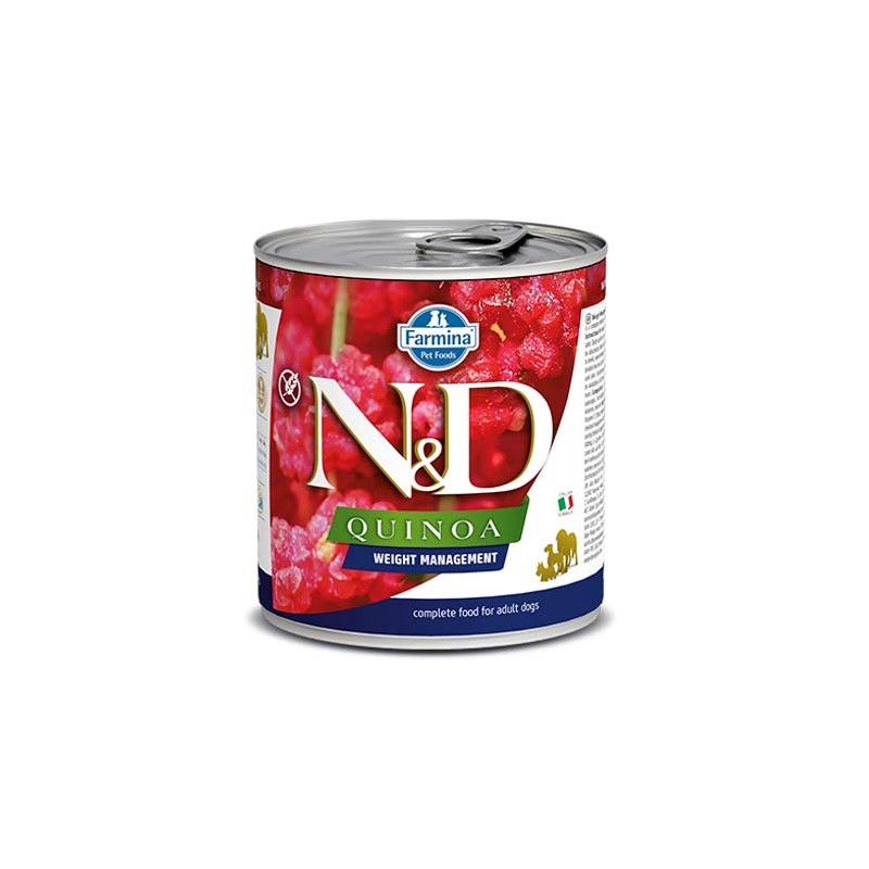 Alimento completo per cani adulti. N&D Quinoa Weight Management è un alimento dietetico completo per cani, consigliato per la riduzione dell’eccesso di peso corporeo.Destinatario :